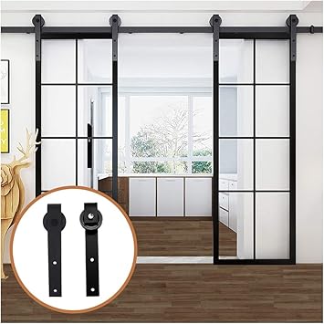 Amazon Com Winsoon 5 18ft Sliding Barn Wood Door Hardware Cabinet Closet Kit Antique Style For Double Doors Black Surface 6ft 72 2 Doors Track Kit Home Improvement