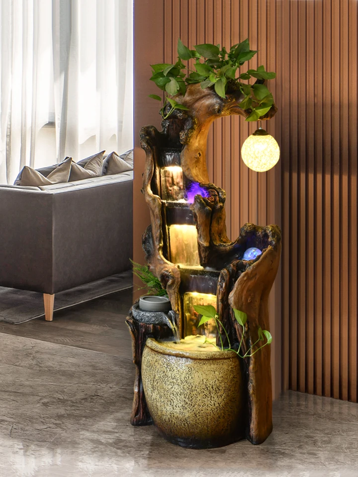 Rockery Water Fountain Wind Wheel Ornaments Lucky Living Room Indoor Transfer Ball Floor Lamp Decoration Opening Shop Figurines Miniatures Aliexpress