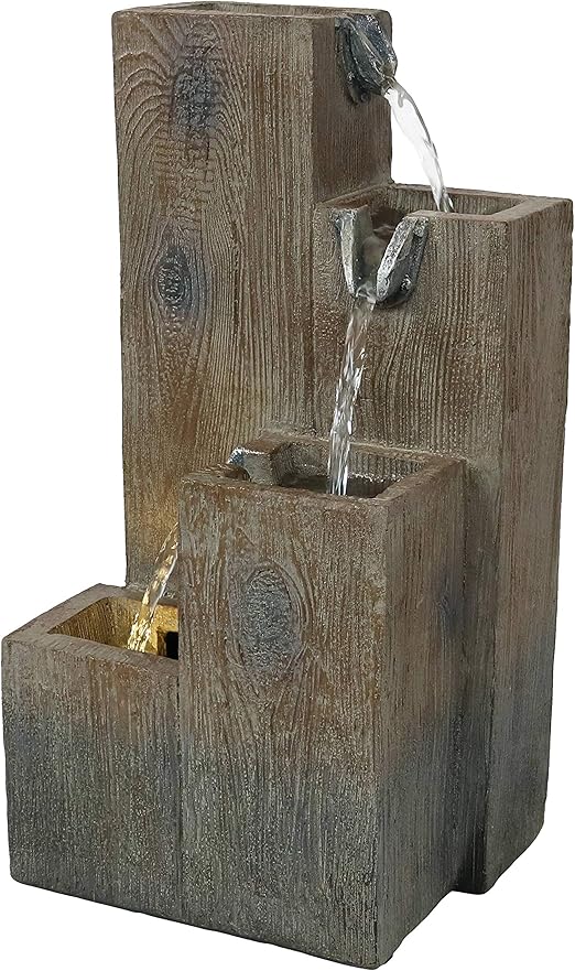 Amazon Com Sunnydaze 13 Inch Faux Wood Tiered Columns Indoor Tabletop Water Fountain With Led Light Mini Interior Water Feature For Home And Office Small Decorative Fountain Sunnydaze Decor Home Kitchen