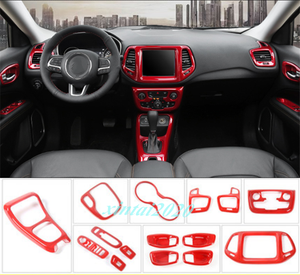 15pcs Red Abs Car Interior Kit Cover Trim For Jeep Compass 2017 2020 Ebay