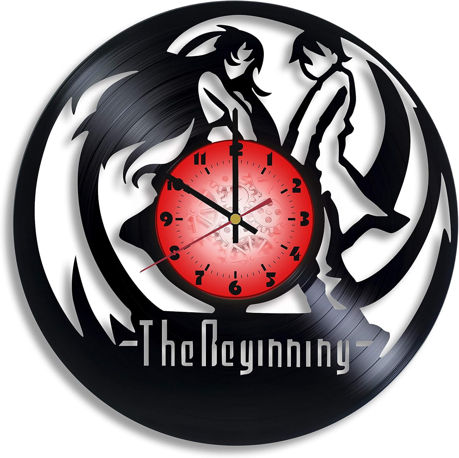 Amazon Com Sword Art Online The Beginning Computer Game Logo Handmade Vinyl Record Wall Clock Sword Art Online The Beginning Kitchen Decor Sword Art Online The Beginning Gift For Him And Her Home