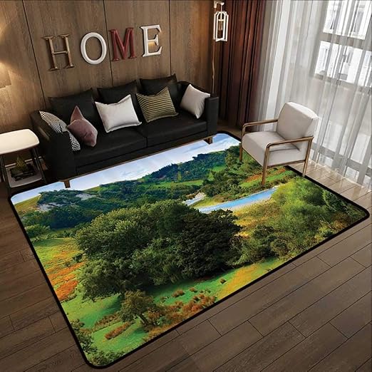 Amazon Com Kitchen Floor Mats Lake House Decor Collection Nature And River Landscape In New Zealand Autumn Countryside Freshness Foliage Scenic Green 78 7 X 118 Door Mat Living Room Non Slip Kitchen Dining