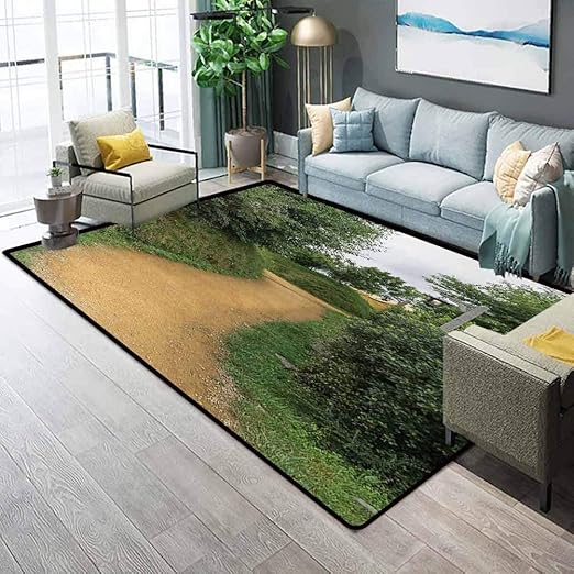 Amazon Com Hobbits Farmhouse Rug Christmas Kitchen Rugs Elf Path In Woods Of Hobbit Land In The Shire New Zealand Movie Set Image Print For Living Room Bedroom Nursery Dining Room Green Brown