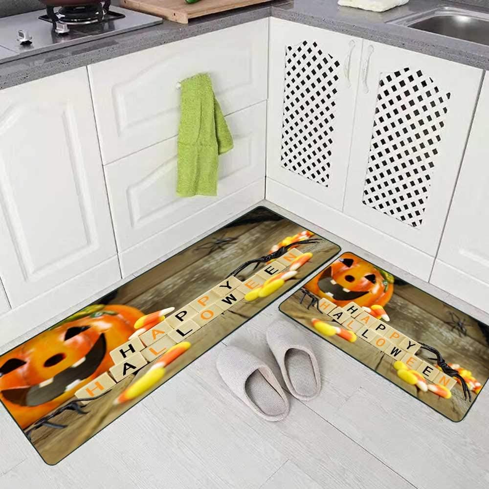 Amazon Com Fullentiart Rugs For Kitchen Rug Kitchen Sink Kitchen Rugs And Mats Kitchen Floor Rug Happy Halloween Wooden Blocks With Candy Corn And Decor Against Kitchen Rugs Non Skid 2 Pieces 17x48 17x24inches