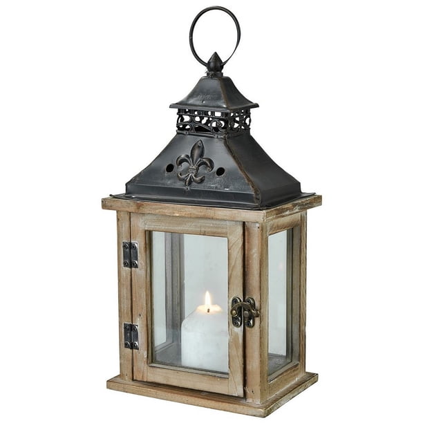 Privilege Large Metal Lantern With Wood Base And Glass Encasing 21049 Walmart Com Walmart Com