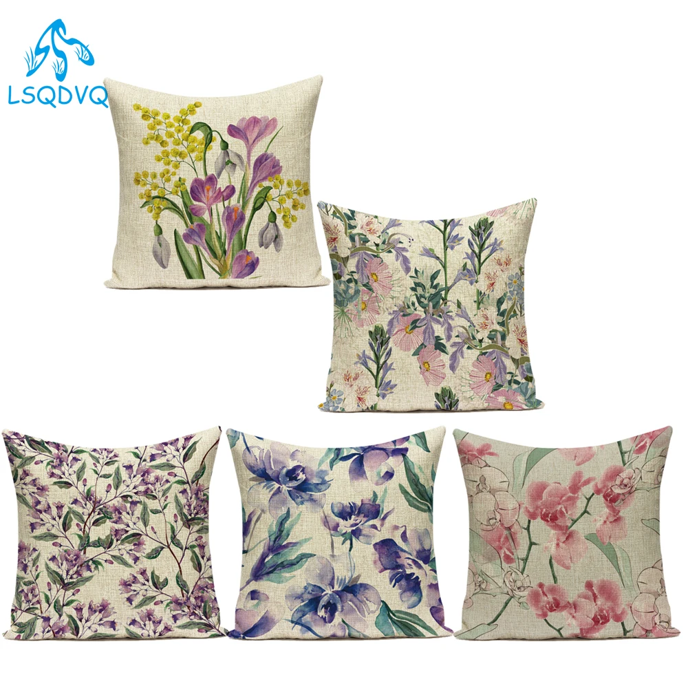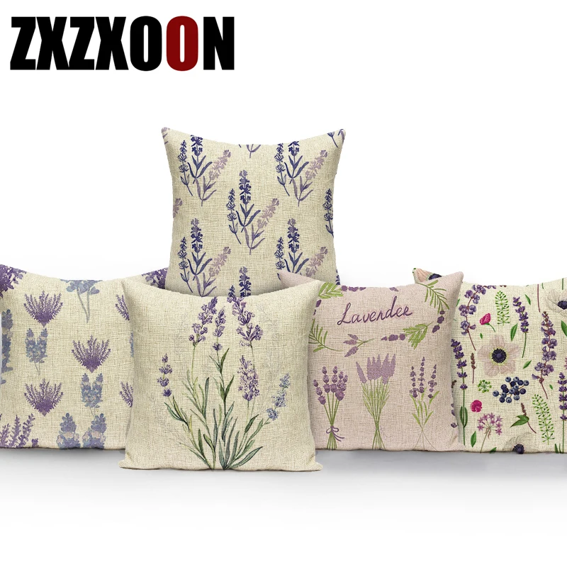 Decorative Pillows Case Lavender Flower Floral Cotton Linen Sofa Home Cushion Cover Decoration Funda Cojines Pillowcase Cushion Cover Aliexpress