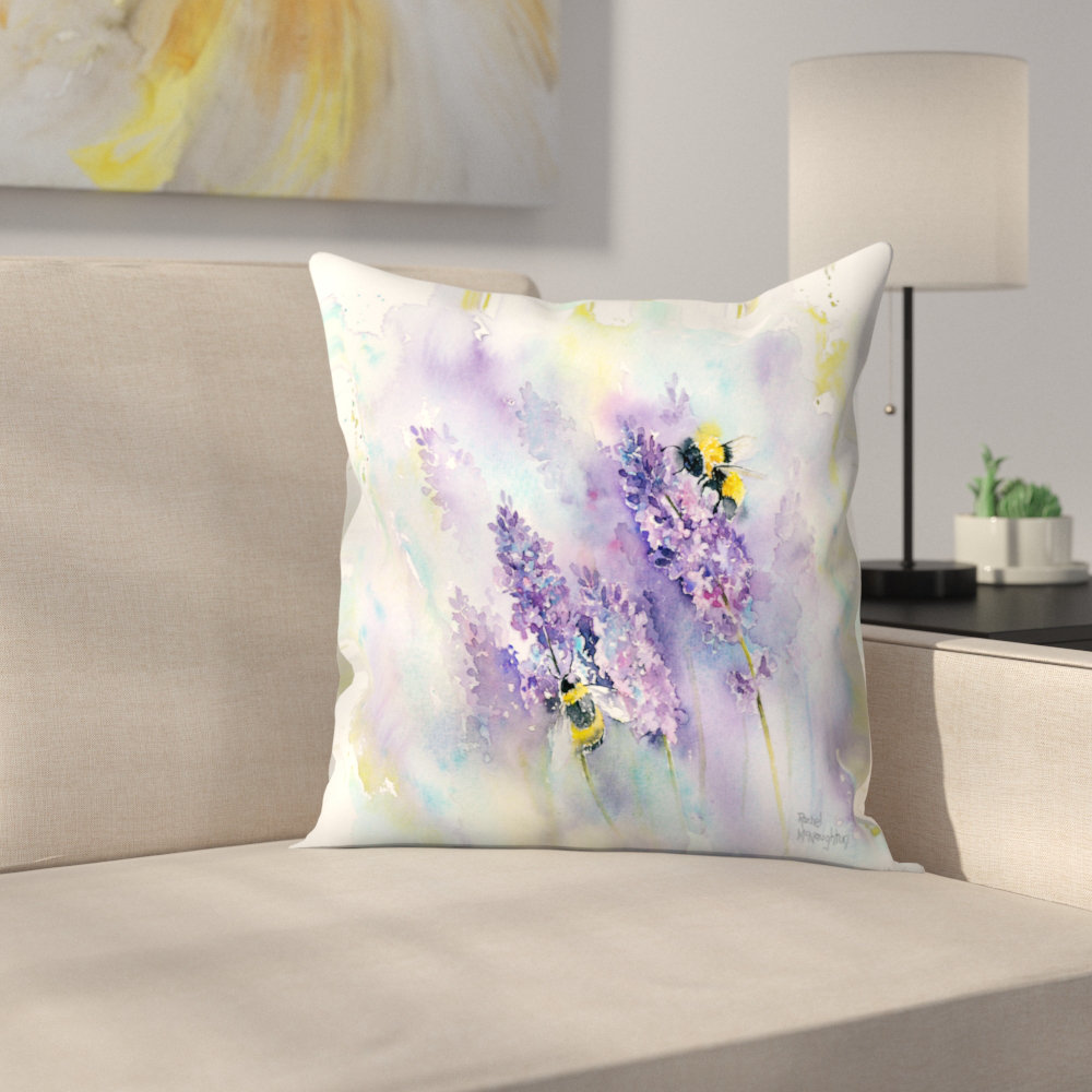 East Urban Home Bees And Lavender Throw Pillow Reviews Wayfair