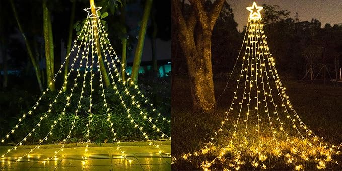 Amazon Com Funiao Outdoor Christmas Decorations Star Lights 317 Led Christmas Tree String Lights With Star Warm Light Home Improvement