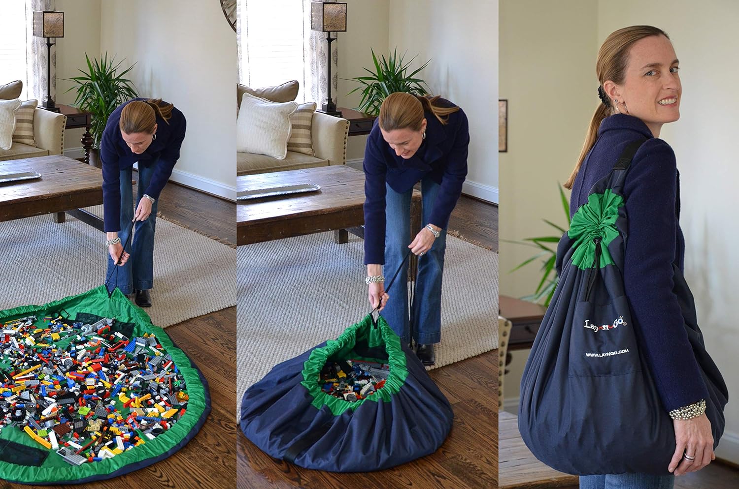Amazon Com Lay N Go Large Building Block Toy Storage Mat Navy Green 60 Drawstring Makes Easy Quick Pick Up Of Building Blocks Toys Play Mat For Babies Toddlers Toys Games