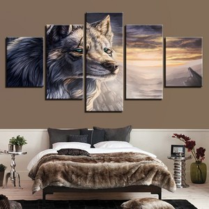 Lone Fox Painting Animal 5 Pc Canvas Wall Art Picture Poster Home Decor Ebay