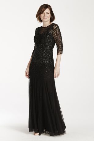3 4 Illusion Sleeve Beaded Floor Length Dress David S Bridal
