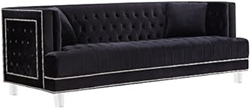 Amazon Com Meridian Furniture Lucas Collection Modern Contemporary Deep Button Tufted Velvet Upholstered Sofa With Square Arms Nailhead Trim And Lucite Legs Black 88 5 W X 35 5 D X 31 5 H Furniture