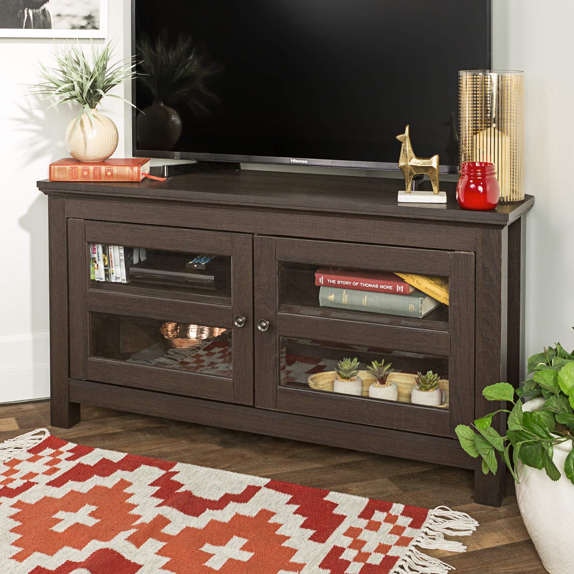 Amazon Com Home Accent Furnishings Lucas 44 Inch Corner Tv Stand With Glass Doors In Espresso Furniture Decor