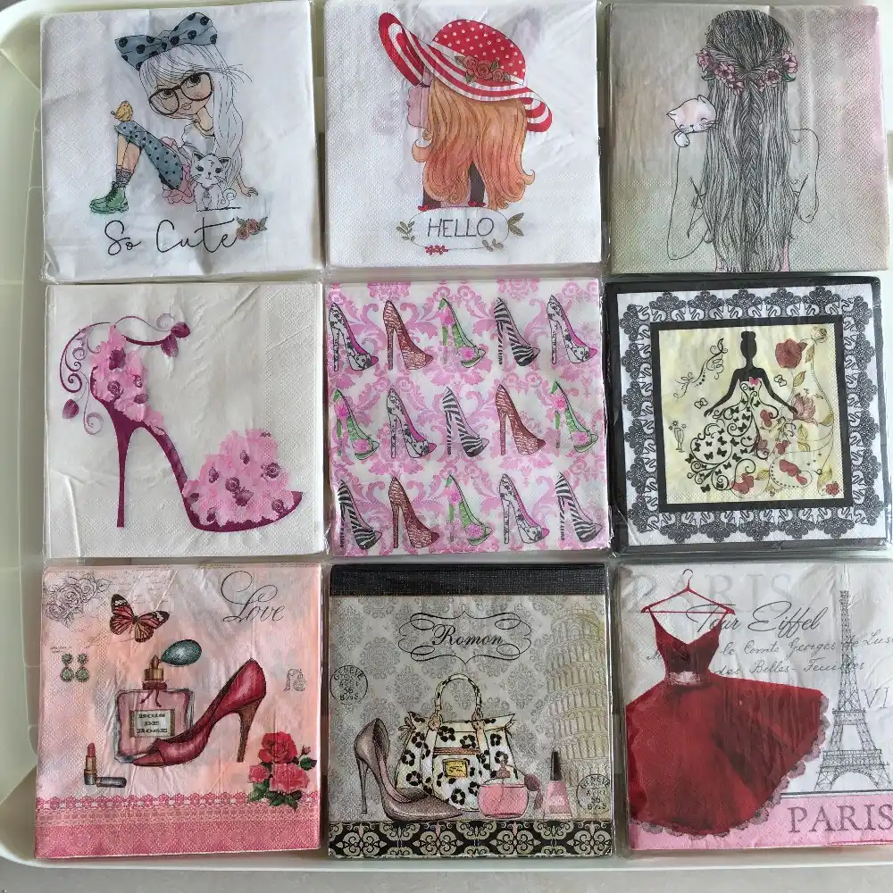 Decoupage Wedding Birthday Party Napkin Paper Tissue Black White Pink Purple Heel Girl Marilyn Monroe Vintage Serviettes Decor Leather Bag