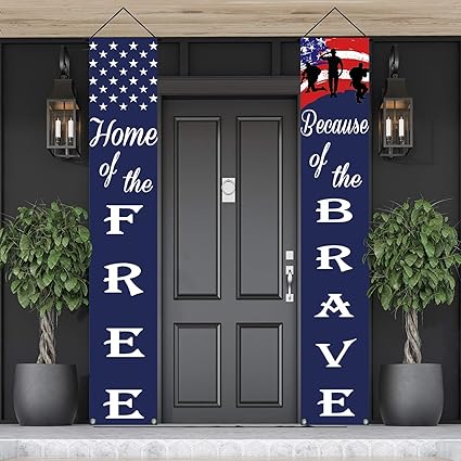 Amazon Com American Flag Patriotic Soldier Porch Sign Banners Patriotic Decoration For Memorial Day 4th Of July Decor Hanging Independence Day Veterans Day Labor Day Hanging Banner For Yard Indoor Outdoor Health Personal Care