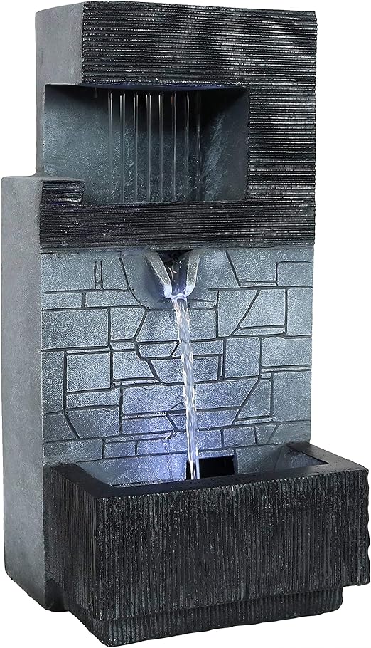 Amazon Com Sunnydaze 13 Inch Modern Tiered Brick Wall Tabletop Indoor Water Fountain With Led Light Small Interior Water Feature For Desktop And Table Mini Decorative Fountain For Home And Office Sunnydaze