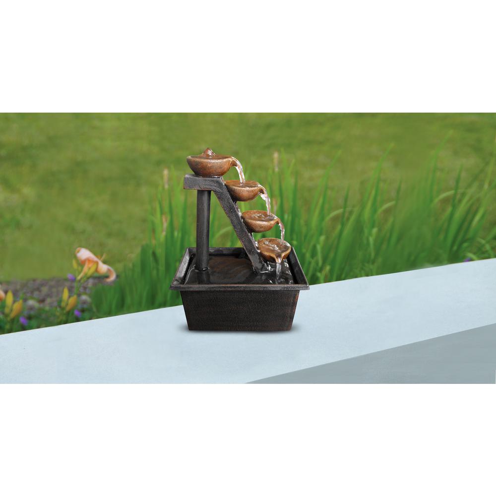 Sunnydaze 13 Inch Modern Tiered Brick Wall Tabletop Indoor Water Fountain With Led Light Mini Decorative