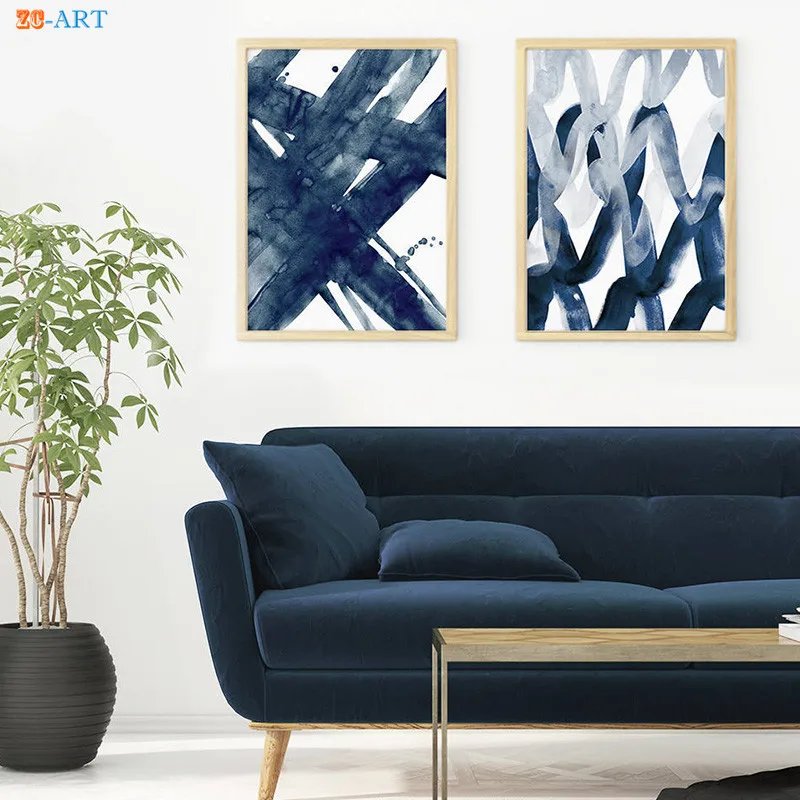 Abstract Painting Navy Blue Watercolour Wall Art Print Brush Stroke Large Poster Modern Minimalist Canvas Painting Home Decor Painting Calligraphy Aliexpress