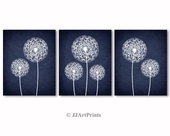Printable Dandelions Wall Art Decor Navy Blue And White Wall Etsy
