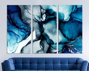 Blue Marble Wall Art Navy Blue Wall Decor Abstract Canvas Etsy In 2020 Blue Wall Decor Living Room Blue Wall Decor Navy Blue Walls
