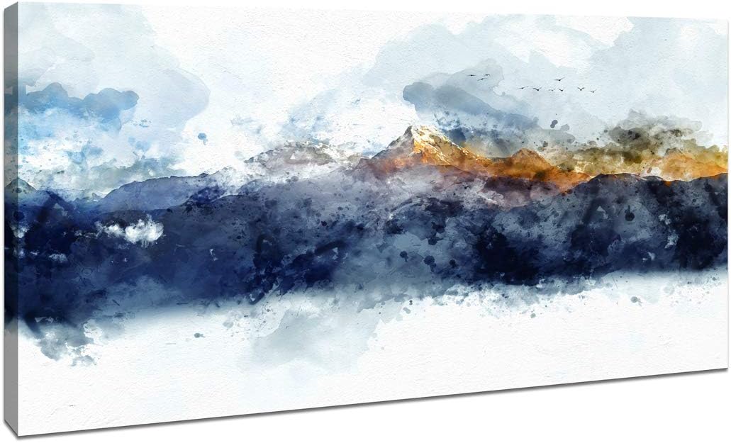 Amazon Com Abstract Canvas Wall Art For Bedroom Living Room Modern Navy Blue Abstract Mountains Print Poster Picture Artworks For Bathroom Kitchen Wall Decor 1 Pieces Framed Ready To Hang 20 X 40