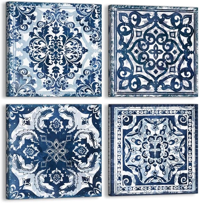 Amazon Com Canvas Art Wall Decor For Bedroom Modern Indigo Abstract Geometric Pattern Wall Art Navy Blue Wall Pictures For Office Bathroom Boys Room Wall Decorations Prints Artwork For Home Walls Gallery Wrapped
