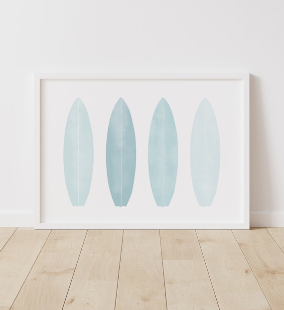 Blue Surfboard Wall Art Watercolor Beach Decor Printable Etsy