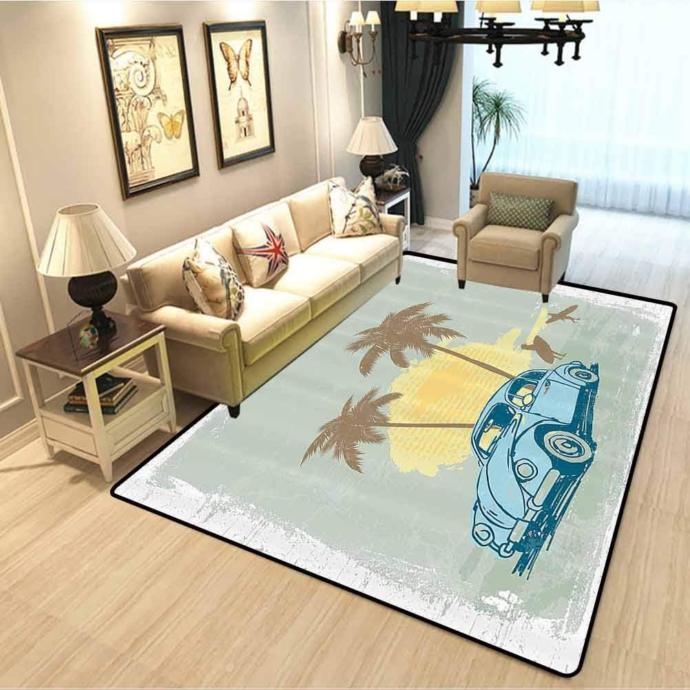 Amazon Com Surf Decor Contemporary Area Rug Summer Illustration With Vintage Car Sunset Surfing Palm Tree Classic Artwork Print Children S Bedroom Play Mat Blue Green Yellow W4xl5 Feet Kitchen Dining