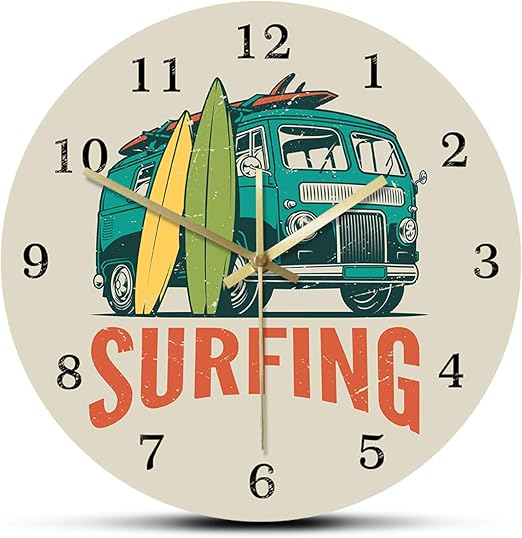 Amazon Com Yuanyuan Wall Clock Surfing Time Vintage Car Kombi Campervan Surfing Wall Clock Summer Travel Van And Surfboard Modern Surf Home Decor Silent Clock For Home Study Room Office Hotel School Clock Home Kitchen