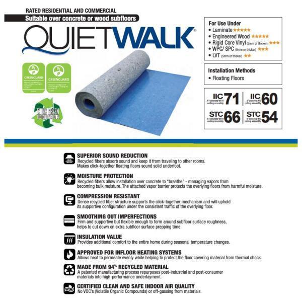 Quietwalk 360 Sq Ft X 6 Ft X 60 Ft X 1 16 In Acoustical Underlayment With Vapor Barrier For Luxury Vinyl Flooring Qwlv360 The Home Depot