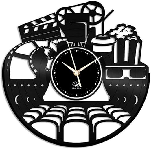 Amazon Com Cinema Vinyl Wall Clock Unique Home Theater Movie Night Film Reels Popcorn Wall Decor Home Decorations Best Gift For A Movie Lover Unique Gift To Your Friends And Family For Any Occasion Home