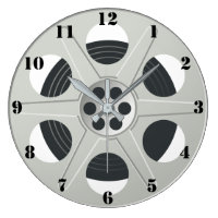 Home Theater Decor Movie Reel Clock Silver Black Painted Movie Reels Red Accents 414329325