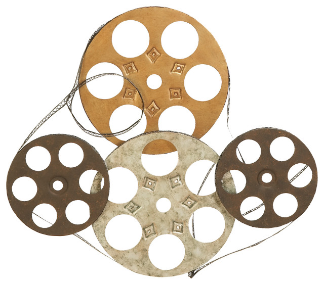 Litton Lane 25 In X 22 In Industrial Inspired Metallic Iron Movie Reel Montage Wall Decor 51650 The Home Depot