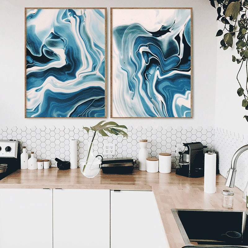 Navy Blue Wall Art Navy Blue And White Wall Decor Abstract Etsy