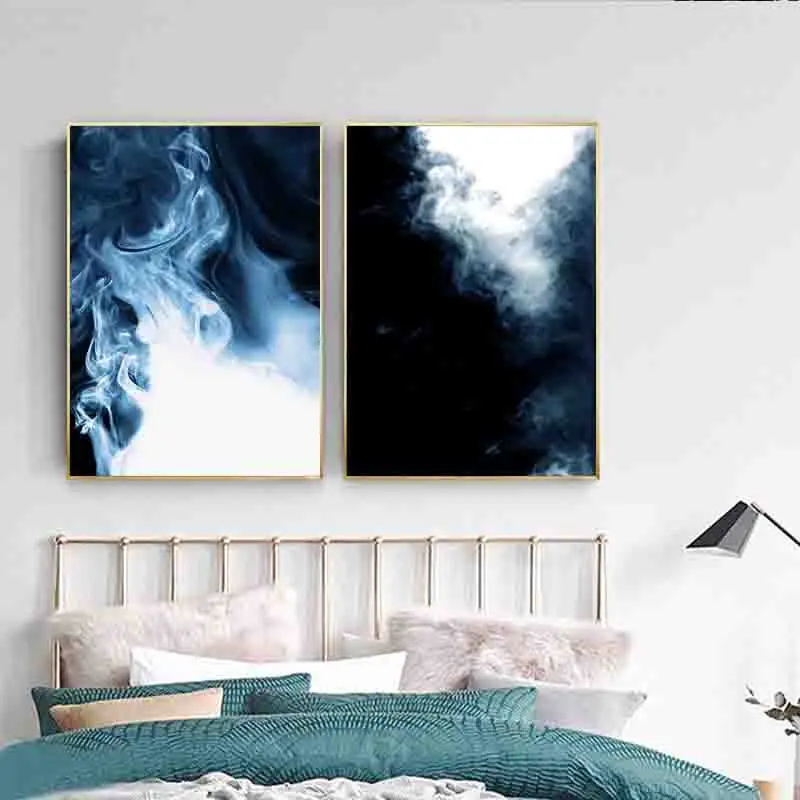 Abstract Watercolour Hd Print Brush Strokes Wall Decor Navy Blue White Canvas Art Modern Minimalist Painting Living Room Decor Painting Calligraphy Aliexpress