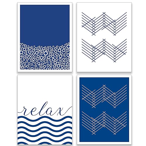 Amazon Com Navy Blue Wall Decor Nautical Wall Decor Blue And White Posters Living Room Wall Pictures Abstract Coastal Art Minimalist Wall Art Beach House Set Of 4 8x10 Prints Unframed Handmade