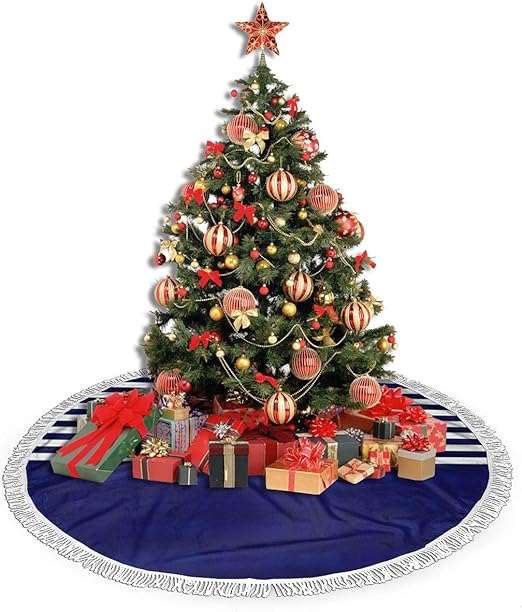 Amazon Com Antvinoler Christmas Tree Skirt Tree Skirt With Fringed Lace Trim For Holiday Christmas Decorations Double Layers Xmas Tree Skirt Navy Blue Love Anchor Nautical Home Kitchen