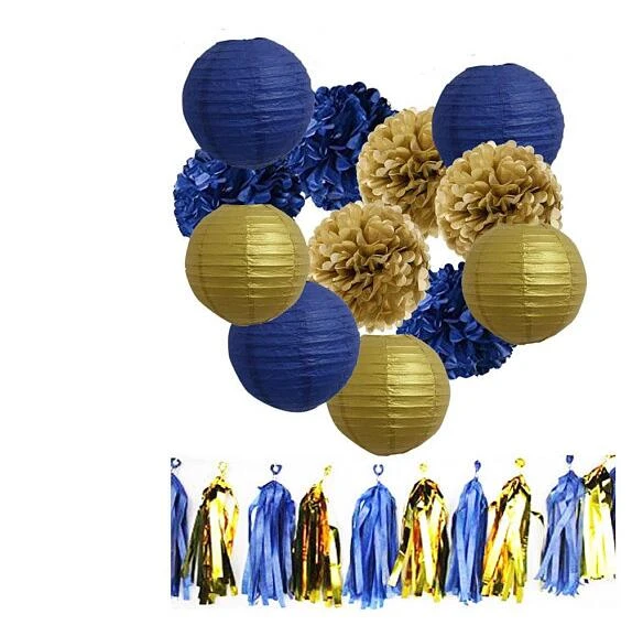 16pcs Bridal Shower Decorations Navy Blue Gold Tissue Paper Pom Poms Paper Lanterns Tissue Paper Tassels Nautical Themed Party Party Diy Decorations Aliexpress