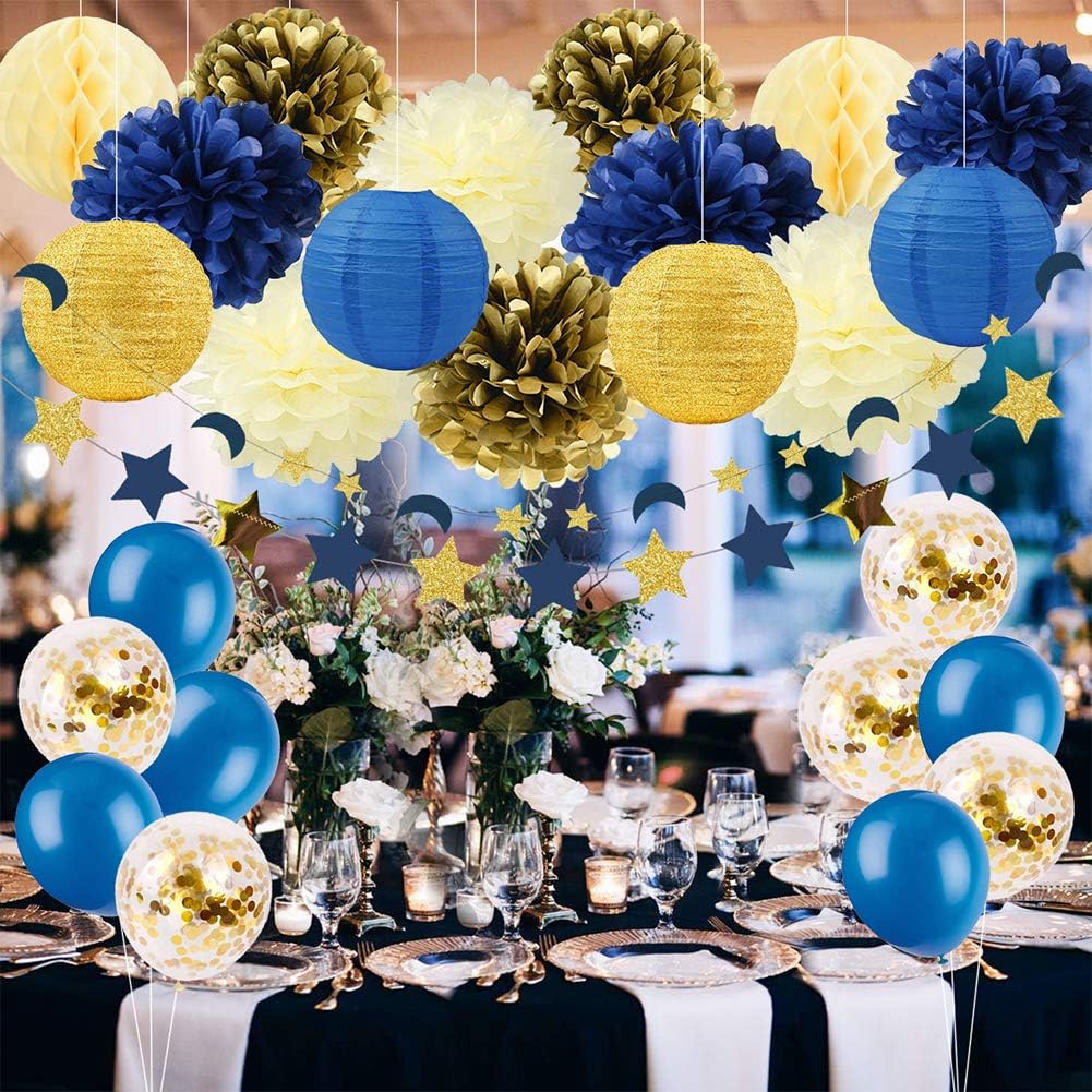 Amazon Com Royal Navy Birthday Decorations Royal Prince Baby Shower Decorations Bridal Shower Decorations Navy Cream Gold Tissue Pom Poms Gold Confetti Balloons Moon Star Garland Boy 1st Birthday Party Supplies Home
