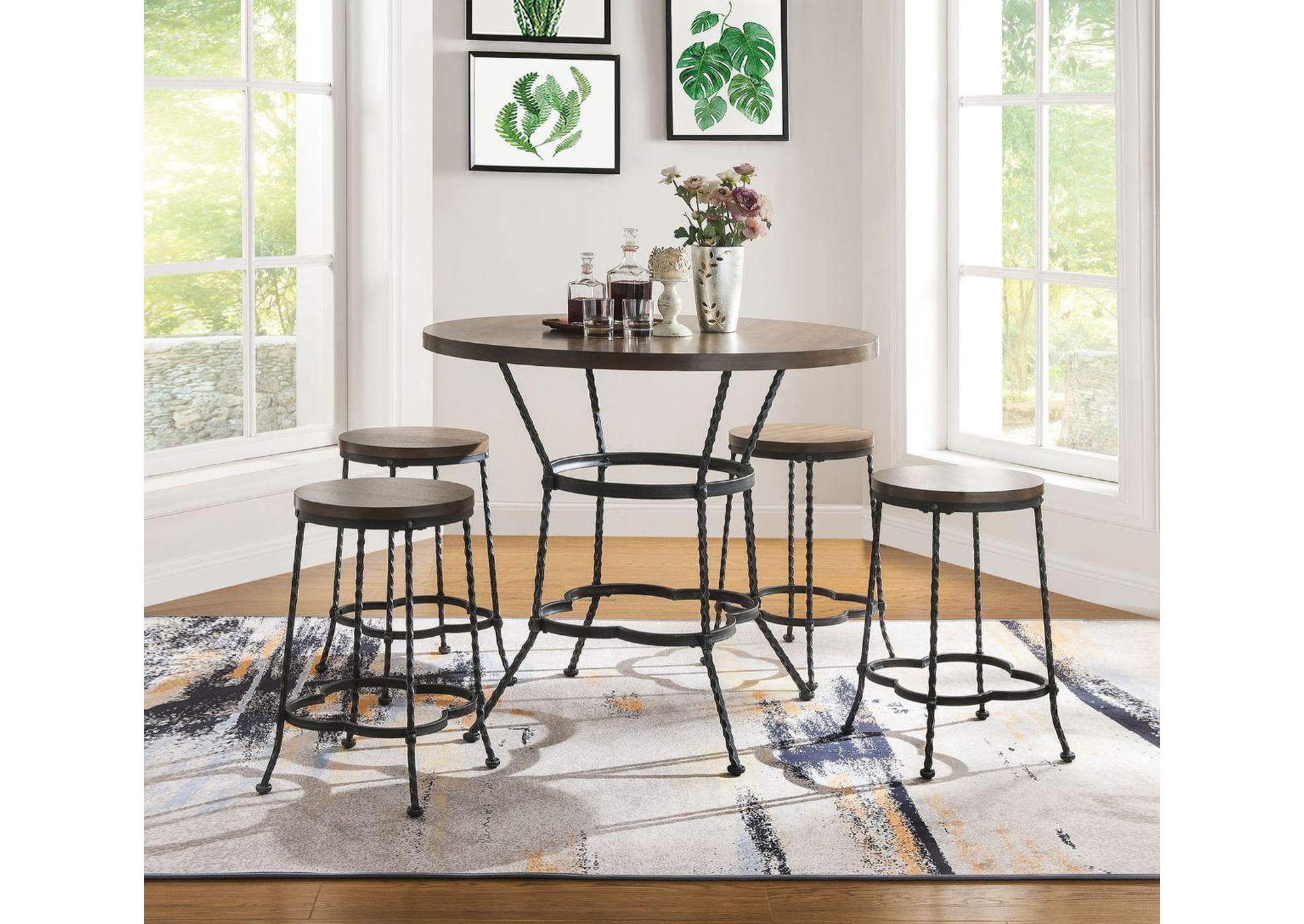 Qamar Oak Antique Black Counter Dining Set Set Of 5 Furniture Outlet Ms