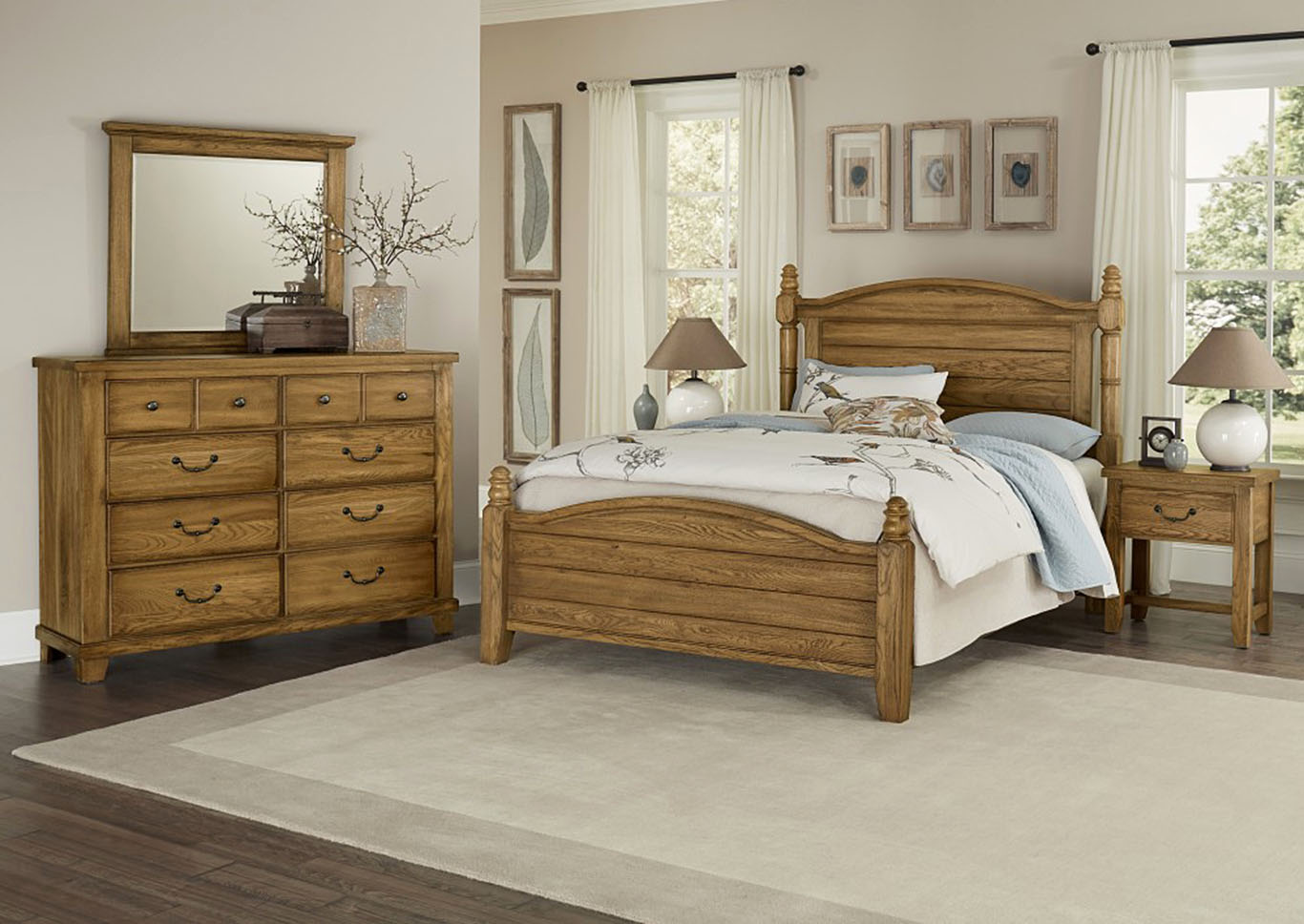 Rustic Cottage Oak Poster King Bed Red Barn Furniture Outlet
