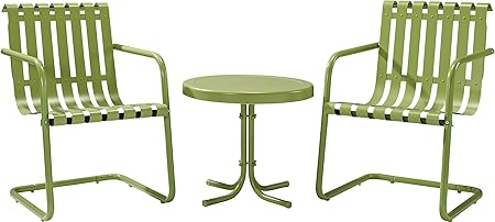Amazon Com Crosley Furniture Gracie 3 Piece Retro Metal Outdoor Conversation Set With Side Table And 2 Chairs Oasis Green Garden Outdoor