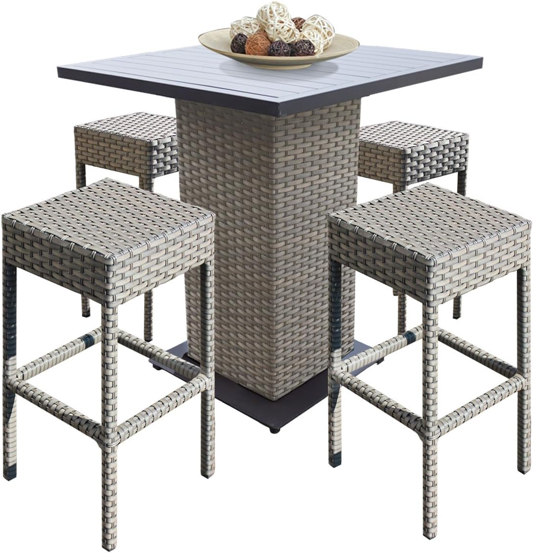 Amazon Com Tk Classics Oasis Outdoor Wicker Patio 5piece Pub Table Set With Backless Barstools Furniture Grey Stone Garden Outdoor