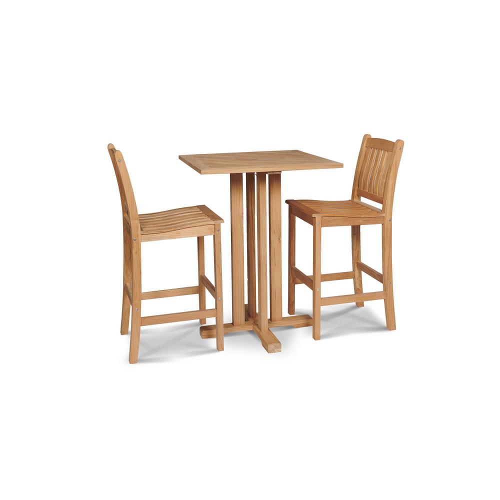 Hiteak Furniture Oasis 3 Piece Teak Square Table Bar Height Outdoor Dining Set Hls Ob The Home Depot
