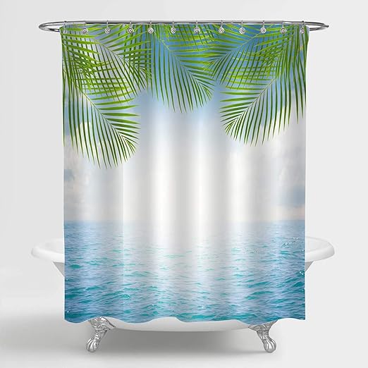 Amazon Com Mitovilla Seascape And Palm Tree Leaf Shower Curtain For Ocean Themed Bathroom Decor Nature Scenic Of Tropical Coastal Beach Bathroom Accessories Ocean Gifts For Women And Men Blue Green 72 X