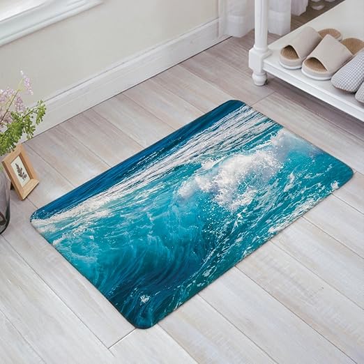 Amazon Com Ocean Theme Blue Sea Waves Door Mats Kitchen Floor Bath Entrance Rug Mat Absorbent Indoor Bathroom Decor Doormats Rubber Non Slip 18 X 30 Kitchen Dining