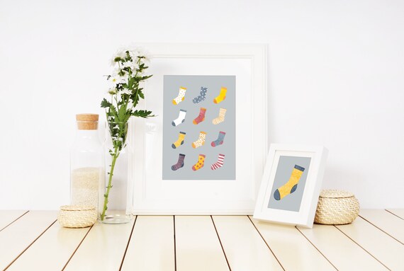 Cosy Laundry Room Odd Sock Wall Art Hygge Watercolour Art Etsy