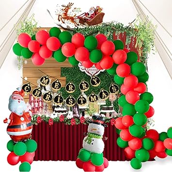 Amazon Com Gojiny Christmas Decorations Set 106 Pcs Christmas Party Supplies Balloons Merry Banner Latex Balloons For Xmas Party Home Office Wall Door Favor Decor Kitchen Dining