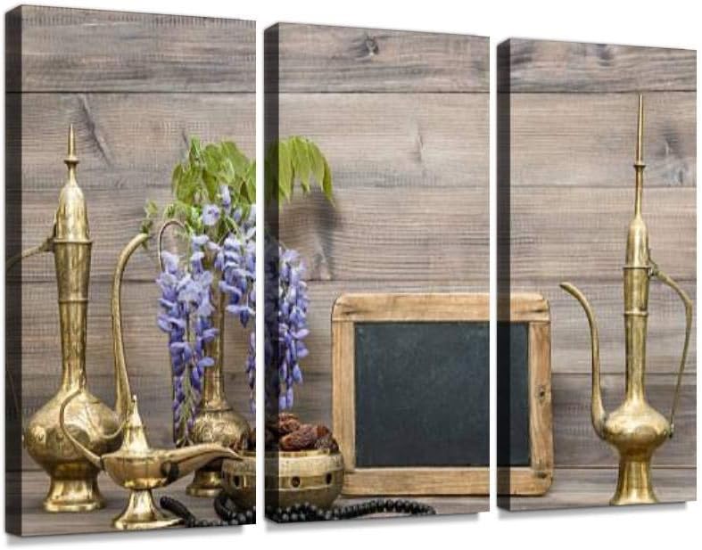Amazon Com Ramadan Kareem Golden Oriental Decorations Islamic Rosary Beads Print On Canvas Wall Artwork Modern Photography Home Decor Unique Pattern Stretched And Framed 3 Piece Posters Prints