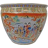 Amazon Com Oriental Furnishings Chinese Porcelain Fishbowl Planters In Satsuma Geishas 12 W X 9 H Base 7 875 Home Kitchen